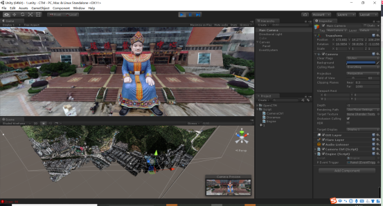 在unity3d工程中,用户只需要把Engine.cs脚本对象挂载到一个资源对象,并在new 倾斜摄影对象时传入文件路径即可,所有显示加载会根据摄像机的远近和可视域进行自动完成。